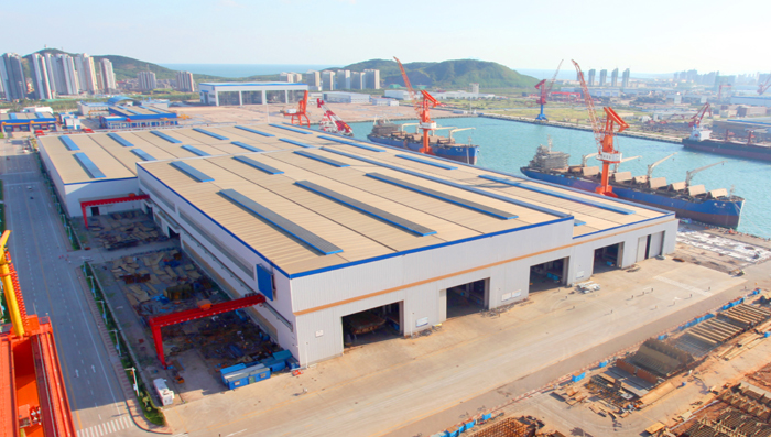 主尺度:長690m,寬240m,高48m,室內面積125190?O,室外面積40410?O。含鋼材存放、預處理、理料、下料加工、部件裝焊、分段裝焊六個功能區。