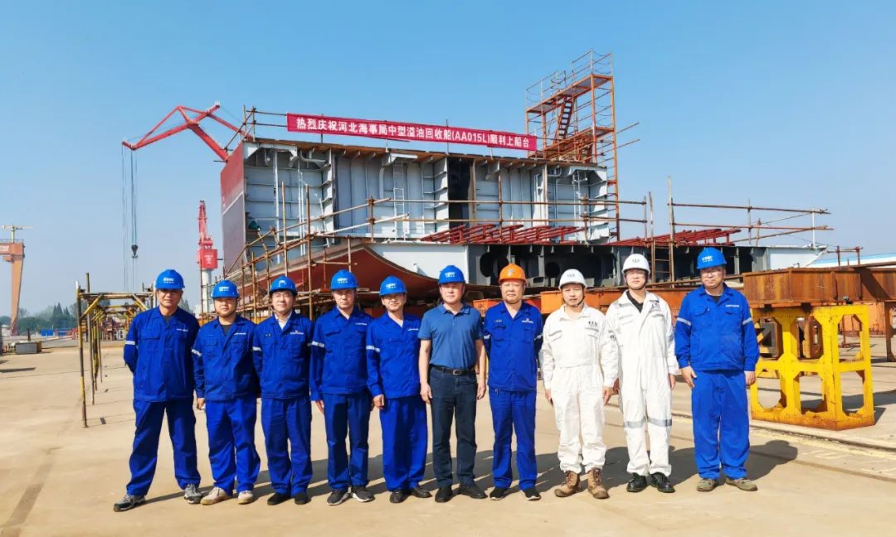 10月16日,由武昌造船承建的河北海事局中型溢油回收船順利實現上船臺節點。河北海事局、中國船級社武漢分社、中國船級社實業有限公司、第七〇八研究所及武昌造船等參建單位相關負責人共同見證。