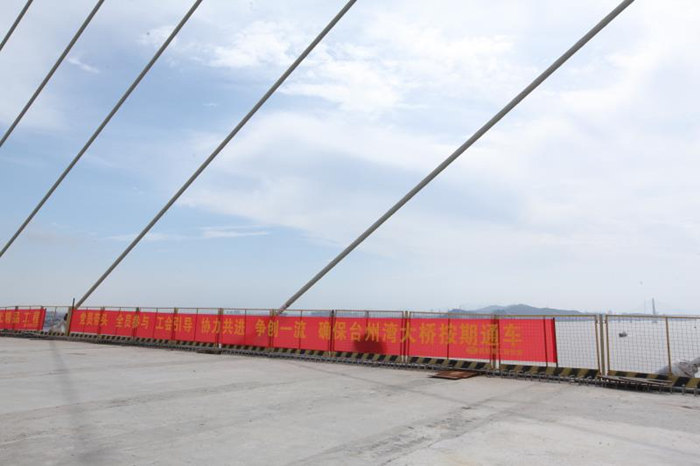 5月23日上午,隨著臺州灣大橋最后一片疊合梁節(jié)段吊裝和濕接縫最后一方混凝土澆筑相繼完成,由武船重工股份承建的臺州灣大橋主橋正式實(shí)現(xiàn)合龍,臺州市領(lǐng)導(dǎo)及其他相關(guān)單位領(lǐng)導(dǎo),公司副總經(jīng)理蔡峰參加合龍儀式,臺州廣電總臺、臺州日報等媒體做實(shí)況報道。