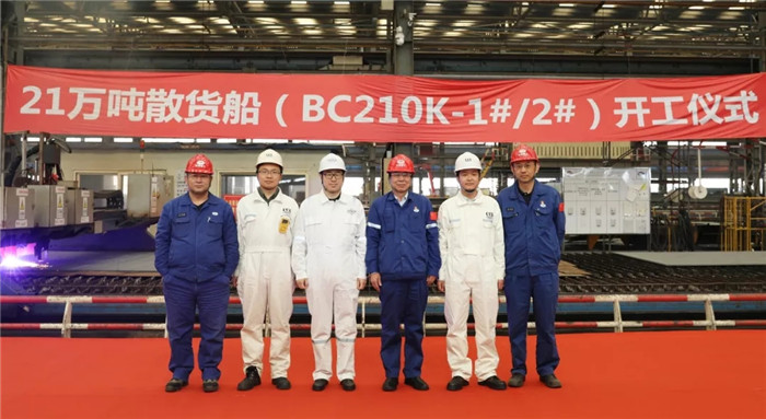 11月15日上午10時18分,由武船集團北船重工承接建造的中遠海運散貨運輸有限公司21萬噸散貨船首制船(BC210K-1#/2#)順利開工。這標志著此項目由前期生產技術準備工作轉入生產建造階段。