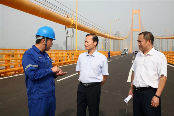 ▲2019年9月19日,易有權(中)在田軍(右)陪同下參觀楊泗港大橋