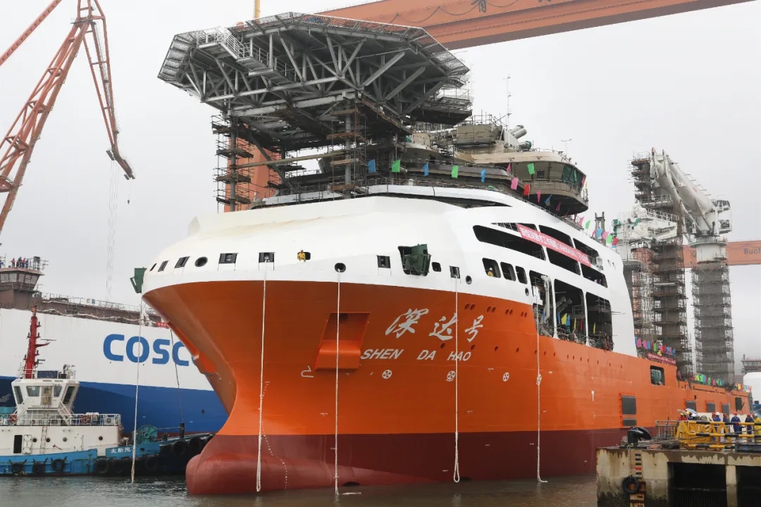 ▲新型深潛水工作母船順利出塢