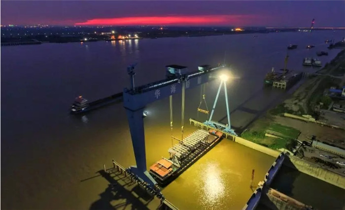 ▲白洋長江大橋首個鋼桁梁節段發運現場