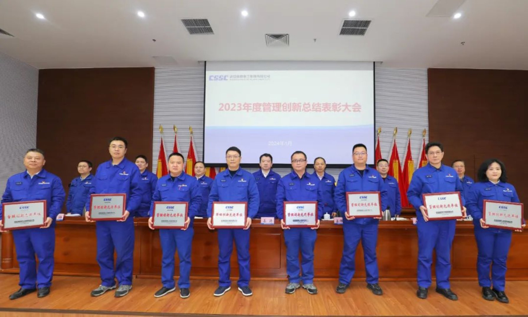 為推動公司管理創新工作,夯實管理基礎,營造蓬勃的創新氛圍,1月4日,中國船舶集團武昌造船召開2023年度管理創新總結表彰大會。公司黨委書記、董事長姜濤出席會議并講話,黨委副書記、總經理梁師清主持會議,公司領導田軍、唐瀅、陳仲明、左照海、劉祎出席會議。公司各單位主要負責人、分管管理創新工作負責人、管理創新先進代表等近百人參加會議。
