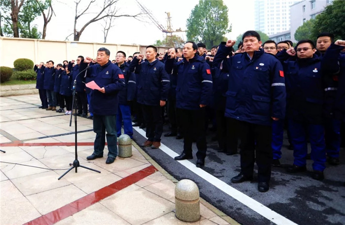 上午8時許,兩百余名黨員面向鮮紅的黨旗,在公司黨委書記、董事長陳?降拇?領下,緊握右拳,以飽滿的精神狀態、洪亮的聲音莊嚴宣誓,表明自己為黨和國家奮斗終身的堅定決心。