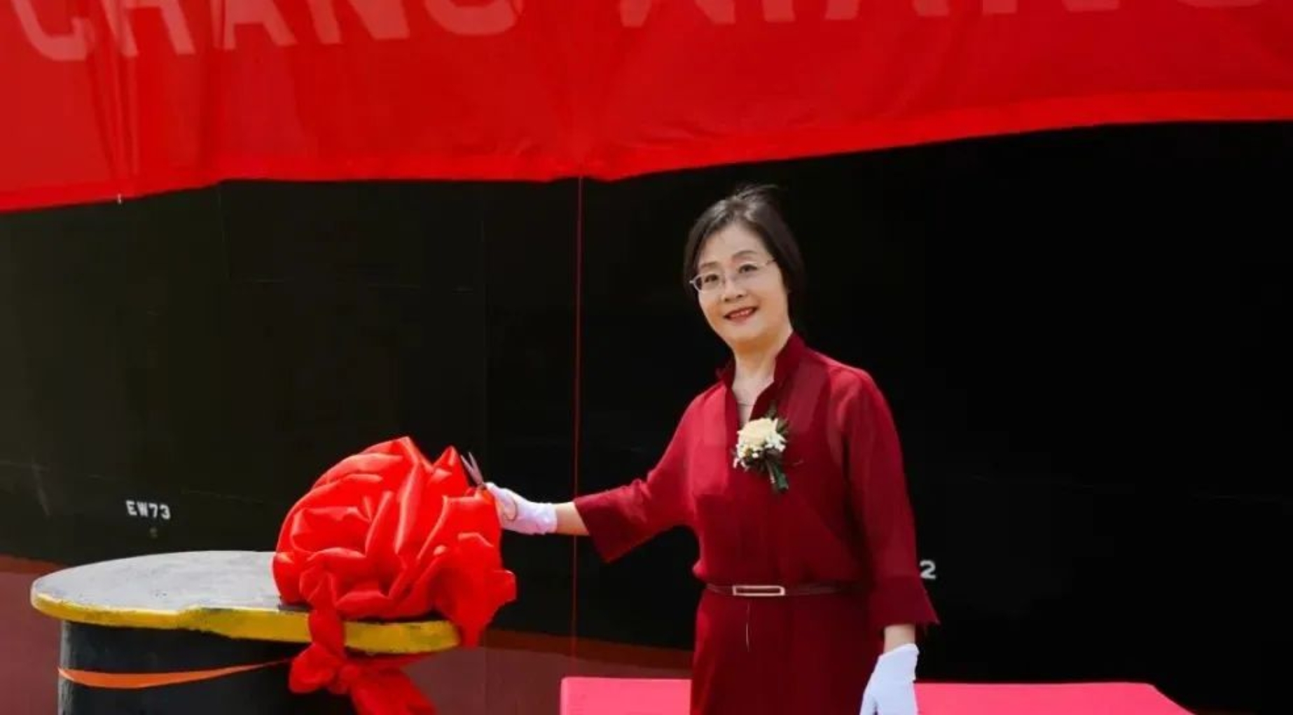 招商局南京油運(yùn)股份有限公司徐萍女士擔(dān)任新船教母,將其正式命名為“長祥洲”輪,并為新船剪纜