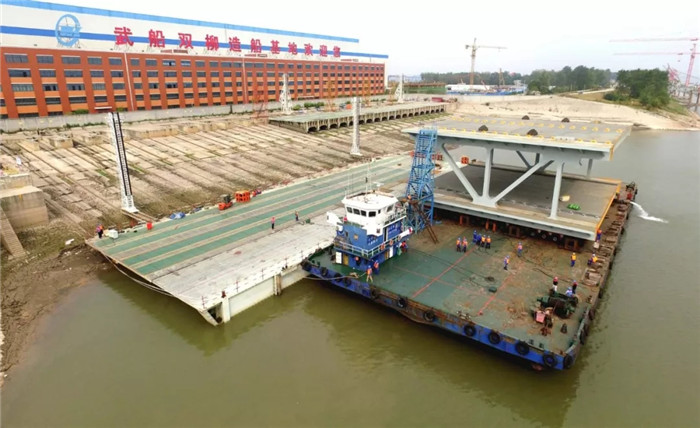 近日,由武船重工股份承建的楊泗港長江大橋主橋鋼桁梁首節(jié)G24H分段成功裝船,將發(fā)運至橋址進行吊裝。