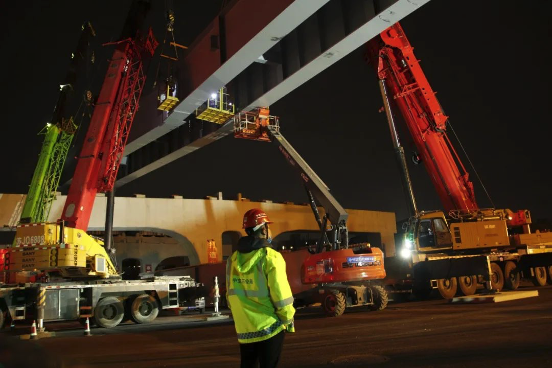 自2019年6月4日TJ01標段全線首節(jié)鋼板梁開始吊裝以來,歷時近15個月,共計439天,整個施工過程先后克服了重要交通路口的封路改道、老橋上架梁以及全線跨徑最長、難度最大的迎賓大道的改道施工和新冠疫情等多重難關,最終按期優(yōu)質地完成了標段全部施工任務。