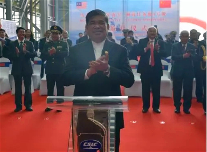 10月23日,馬來西亞瀕海任務艦項目2號艦開工及1號艦上船臺活動在武船雙柳基地成功舉行。中船重工總經理吳永杰、馬來西亞國防部部長沙布先生出席活動并致辭。中船重工副總經理吳曉光,馬來西亞國防軍總司令祖克弗里上將,武船董事長楊志鋼、副總經理姚勝華及馬來西亞海軍、馬來西亞莫實德船廠、中國政府及軍隊相關部門、中國船級社、中船重工等單位相關領導及代表蒞臨活動現場。
