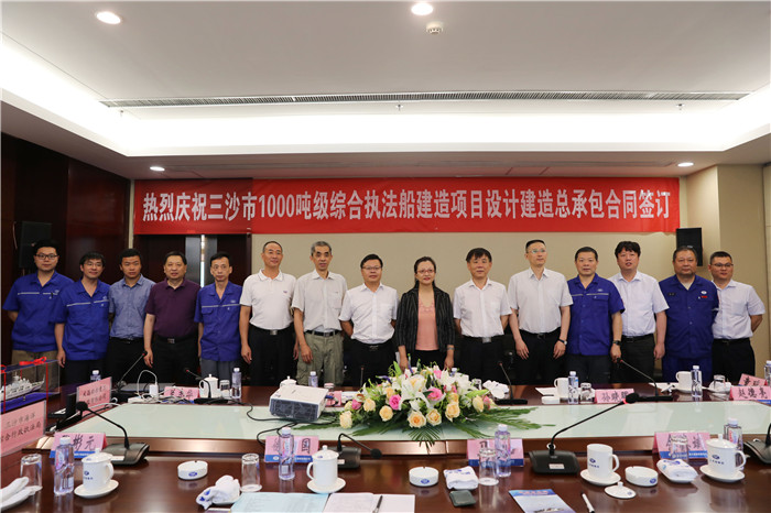 6月21日,武船集團與三沙市海洋綜合行政執法局在武船雙柳基地簽訂1000噸級綜合執法船建造合同。