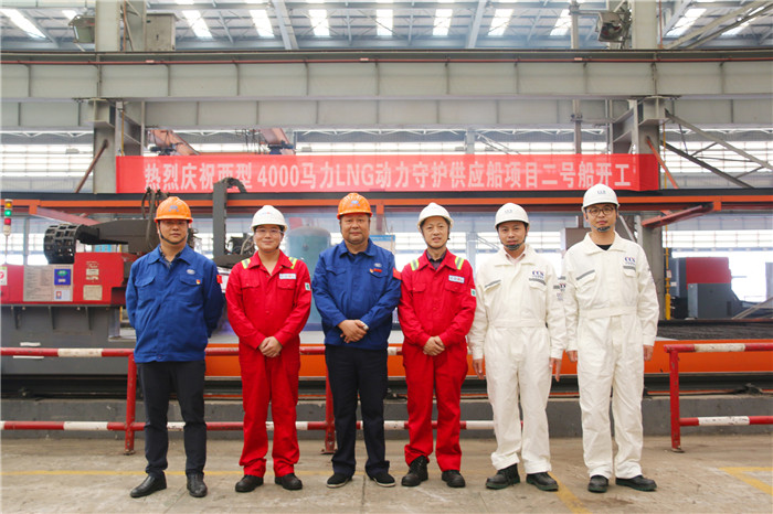 2019年10月31日,由武船集團(tuán)船舶公司為中海油服建造的兩型4000馬力LNG動(dòng)力守護(hù)供應(yīng)船項(xiàng)目2號(hào)船在武船雙柳基地順利開工,船東、船檢以及船舶公司相關(guān)領(lǐng)導(dǎo)參加開工活動(dòng)。這也標(biāo)志著該項(xiàng)目由前期生產(chǎn)技術(shù)準(zhǔn)備階段進(jìn)入生產(chǎn)建造階段。