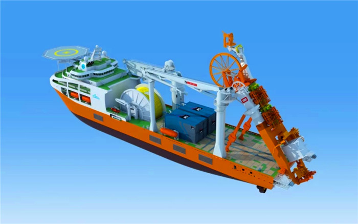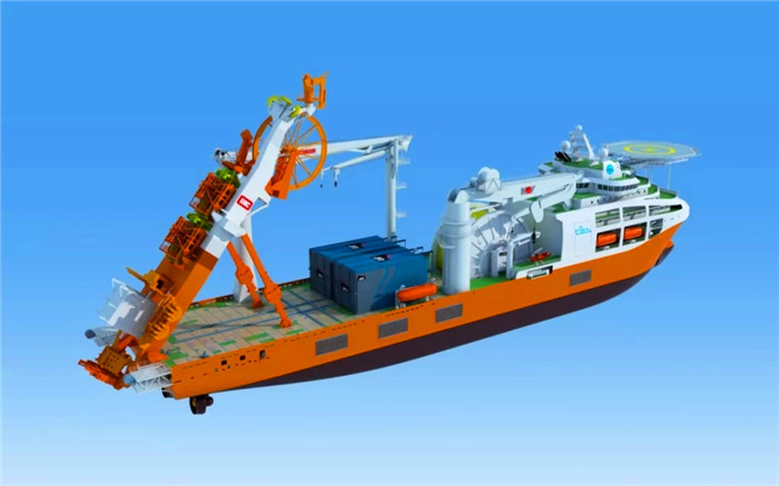 該船具有強(qiáng)大的海洋工程作業(yè)綜合能力。本船配有24人/雙鐘/500米飽和潛水1套;帶波浪補(bǔ)償功能折臂海工吊雙繩800噸1臺,可實現(xiàn)在3000米(極限6000米)深海400T起吊作業(yè);550T鋪管能力的鋪管系統(tǒng)1套,可實現(xiàn)在最大3000m水深硬管和軟管的鋪管;工作級水下機(jī)器人2臺,滿足水下施工要求。