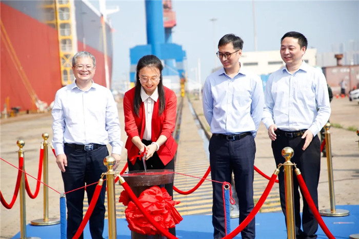 上午11:00,北船重工首次采用儀式現場視頻連線的形式,于臺北、新加坡、青島三地同步舉辦為裕民航運股份有限公司建造的“裕元”輪命名儀式,實現了“云命名”、“云砍纜”。