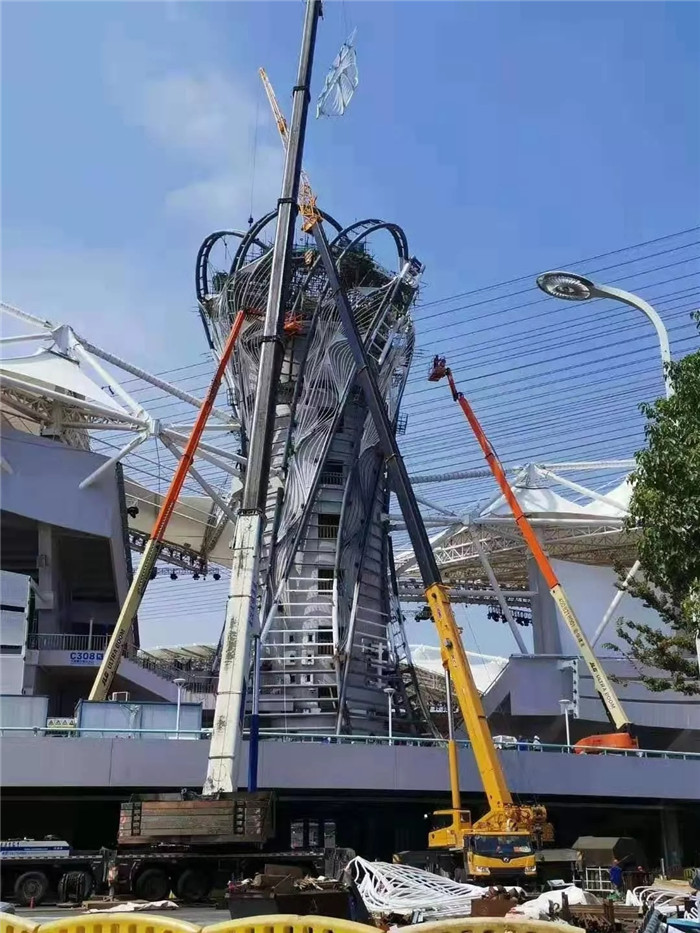 九層樓高的火炬塔,改造后約為46米。為了順利實現高空安裝、吊裝、焊接等作業的迅速、有效鋪開,吳剛將和楊華千方百計協調來58米的高空作業車和具備550噸起吊能力且伸展臂長達到78米的起重機車配合作業。
