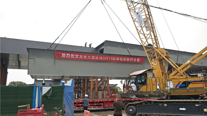 光谷大道鋼箱梁順利合攏;