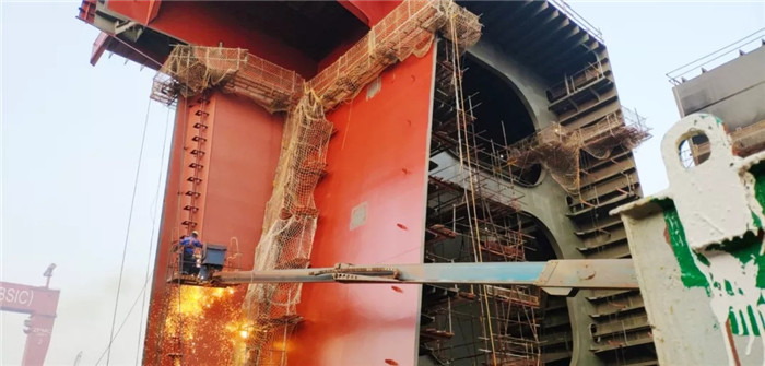 目前,北船重工批量的洗滌塔改裝項目持續承接,在往年為修船淡季的這個時候,生產高峰卻持續不斷,在修船舶的數量長期保持在20多艘以上,創下近幾年來在修船舶數量的最高峰。其中洗滌塔安裝項目多達18艘同時在廠,涉及多個修船傳統優質客戶,如“馬士基”、“奧登道夫”、“OHT”、“SOGNA”、“赫伯羅特”等,碼頭資源充分利用,多個泊位雙檔、3檔靠船,各工種生產任務飽滿,在即將迎來年底收官之際,修船分廠全體員工以及工程承包商一道,全力沖刺年度各項任務目標。