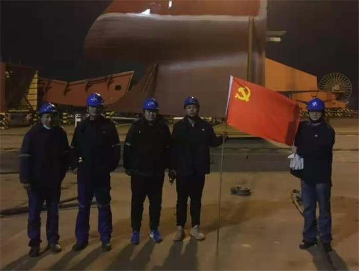 11月26日,中國(guó)船舶武船集團(tuán)船舶總裝部支持作業(yè)區(qū)黨支部在生產(chǎn)現(xiàn)場(chǎng)開(kāi)展特色支部主題黨日活動(dòng),突擊完成5000t臺(tái)灣海峽大型巡航救助船球鼻艏分段吊裝工作,標(biāo)志著該產(chǎn)品主船體形成。