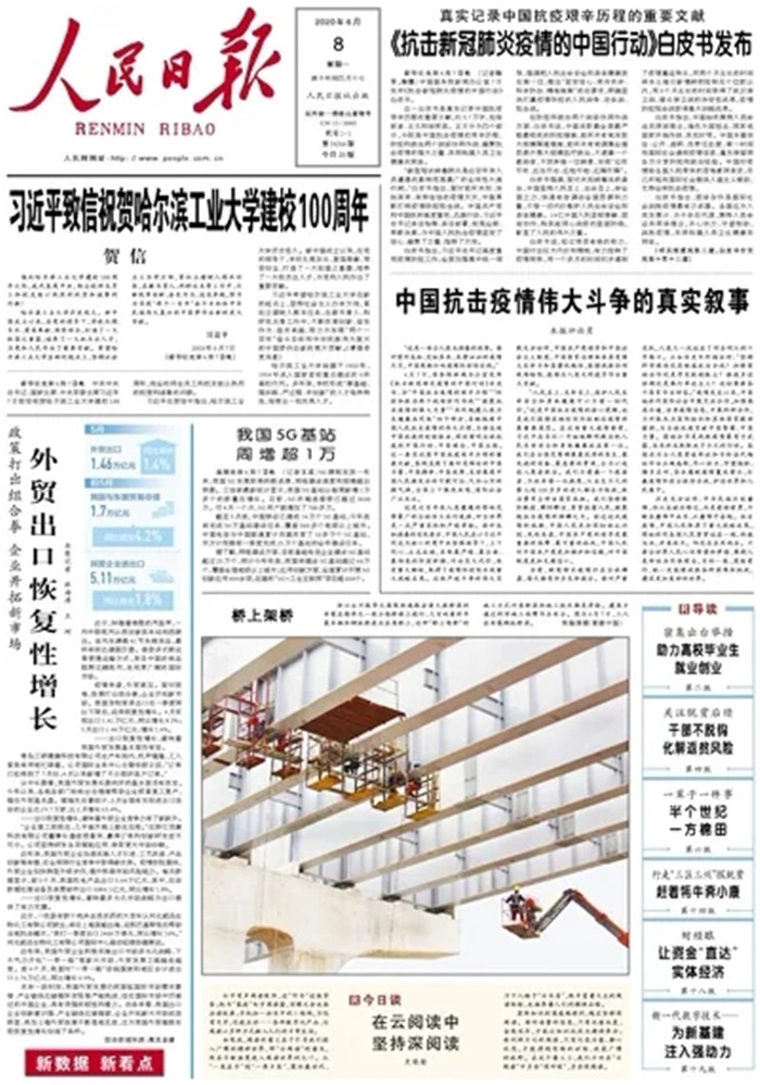 圖為6月7日,工人在進行鋼梁對接作業(人民日報)