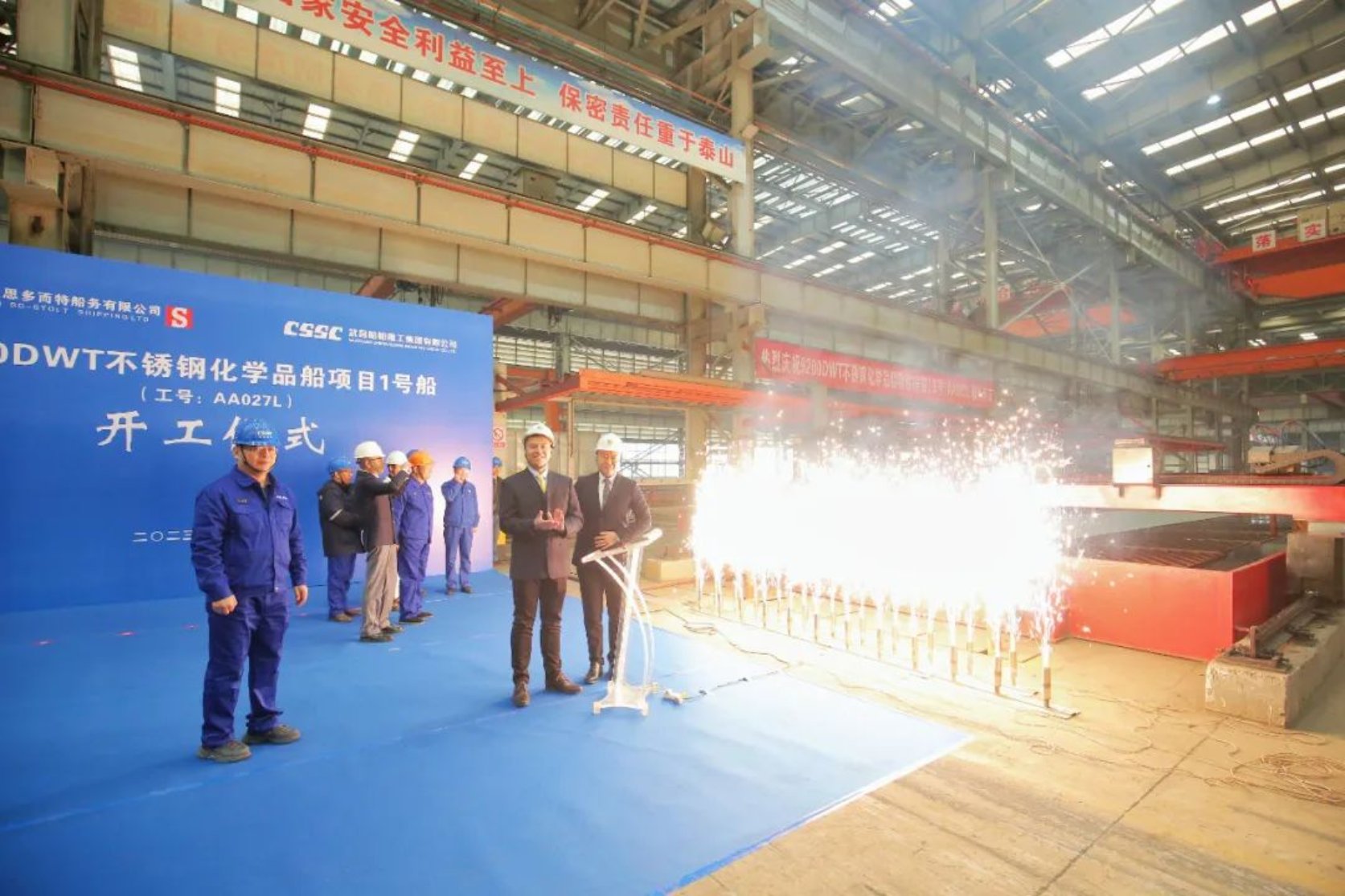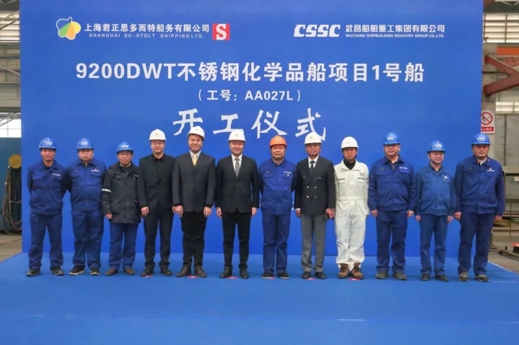 11月15日11點18分,由中國船舶集團武昌造船為上海君正思多而特船務(wù)有限公司建造的 9200DWT不銹鋼化學(xué)品船1號船 正式開工。上海君正思多而特船務(wù)有限公司總經(jīng)理張華、副總經(jīng)理鄭翼杰及現(xiàn)場監(jiān)造團隊、中國船級社武漢分社、武昌造船等相關(guān)單位負責人參加開工儀式。