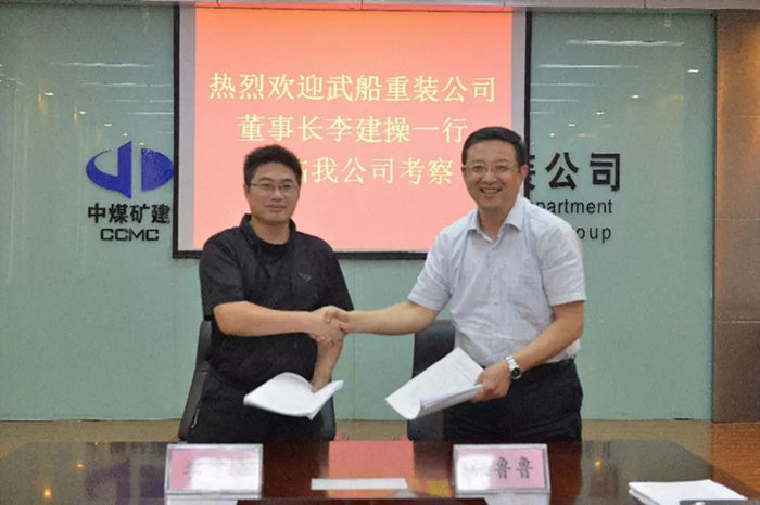 近日,武船集團重裝公司黨委書記、董事長李建操一行到安徽中煤第三建設集團機電安裝公司考察參觀,并簽訂壽縣濟祁高速三覺互通連接線工程新橋大橋主橋合同,該公司黨委書記、董事長張魯魯等人全程陪同。