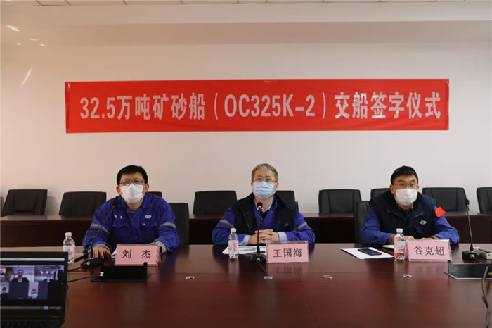 4月15日,中國船舶武船集團北船重工為工銀金融租賃有限公司和招商局能源運輸股份有限公司建造的32.5萬噸礦砂船“ORE FUZHOU”輪順利交付,這是繼北船重工2月份剛剛交付首制32.5萬噸礦砂船“ORE YANTAI”輪之后,交付的同型姊妹船。該船在延續首制船電簽的基礎上,通過視頻會議形式舉辦交船簽字儀式,武船集團北船重工董事長王國海、工銀租賃航運金融事業部執行總經理郭芳萌、招商輪船副總經理丁磊先后講話并就后續產品建造情況進行了座談交流。
