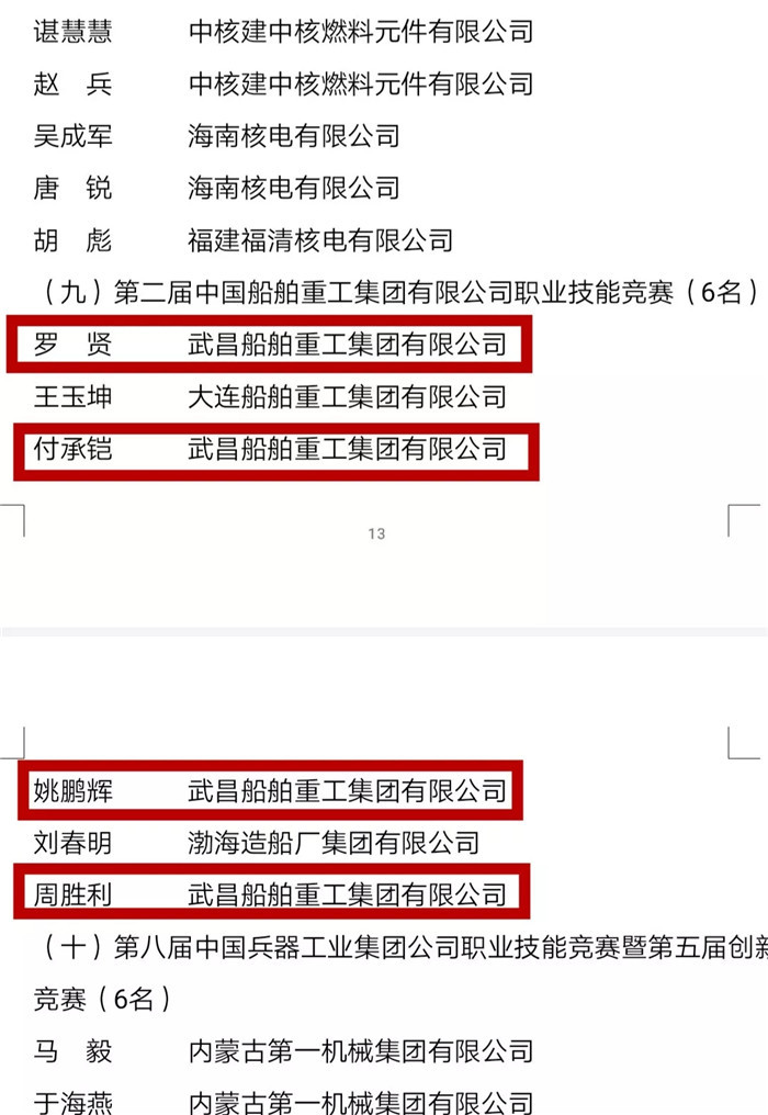 2018中國(guó)技能大賽?C?C第二屆“船舶杯”中船重工職業(yè)技能競(jìng)賽過(guò)程中,武船集團(tuán)下屬單位模塊公司姚鵬輝、軍船公司羅賢、北船重工周勝利、船舶公司付承鎧等參賽選手認(rèn)真?zhèn)淇紤?yīng)考,按照比賽規(guī)則出色完成了全部比賽科目,從中船重工16支代表隊(duì)的81名選手中脫穎而出,姚鵬輝和羅賢分別斬獲船體裝配工和船舶電焊工比賽第一名,周勝利、付承鎧分別獲得船體裝配工和船舶電焊工比賽第三名,展現(xiàn)了高超的船舶建造技藝。按照《中華技能大獎(jiǎng)和全國(guó)技術(shù)能手評(píng)選表彰管理辦法》和《人力資源和社會(huì)保障部關(guān)于組織開(kāi)展2018年中國(guó)技能大賽的通知》要求,在2018中國(guó)技能大賽?C?C第二屆“船舶杯”中船重工職業(yè)技能競(jìng)賽(國(guó)家級(jí)二類競(jìng)賽)決賽中獲得前3名成績(jī)的武船職工姚鵬輝、羅賢、周勝利、付承鎧被人社部授予“全國(guó)技術(shù)能手”榮譽(yù)稱號(hào)。