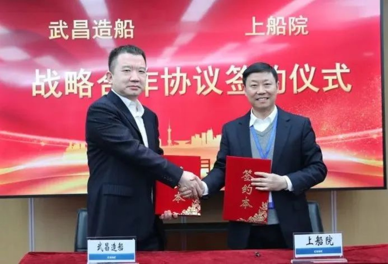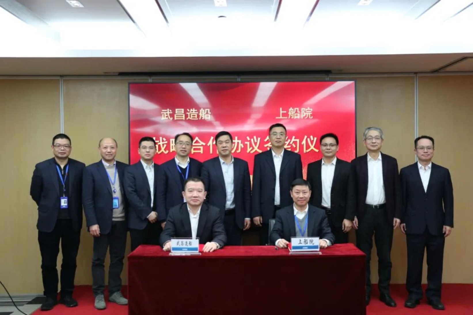 2月17日,中國船舶集團旗下武昌船舶重工集團有限公司與上海船舶研究設計院在滬簽署戰略合作協議。簽約儀式上,武昌造船黨委書記、董事長姜濤,上船院院長呂智勇分別代表雙方簽訂《戰略合作協議》,雙方相關部門負責人參加簽約儀式。