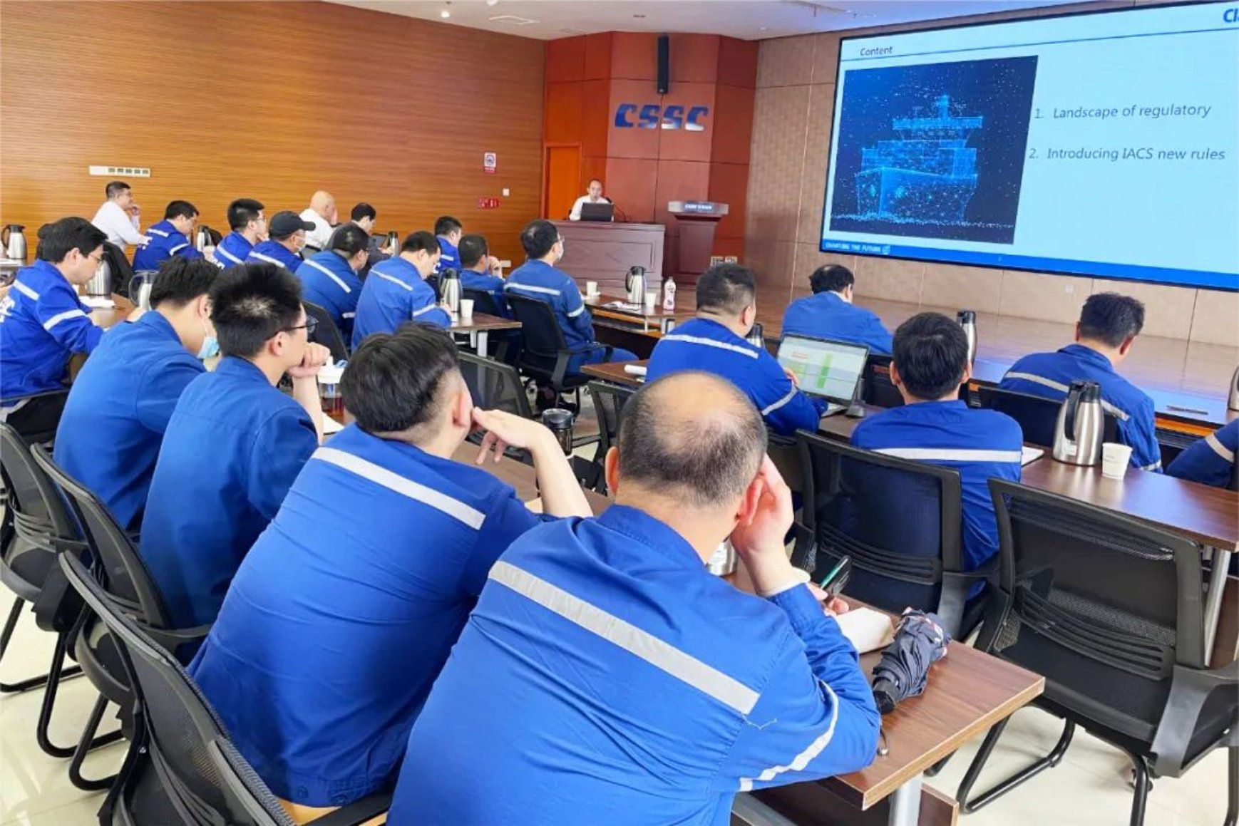 為做強(qiáng)做精主業(yè),提升造船品質(zhì),4月14日上午,武昌造船在創(chuàng)新樓12樓武船講堂舉辦NK船級(jí)社(中國(guó))技術(shù)交流會(huì),設(shè)計(jì)院、生產(chǎn)管理部、經(jīng)營(yíng)部、質(zhì)量部共30余人參與交流。