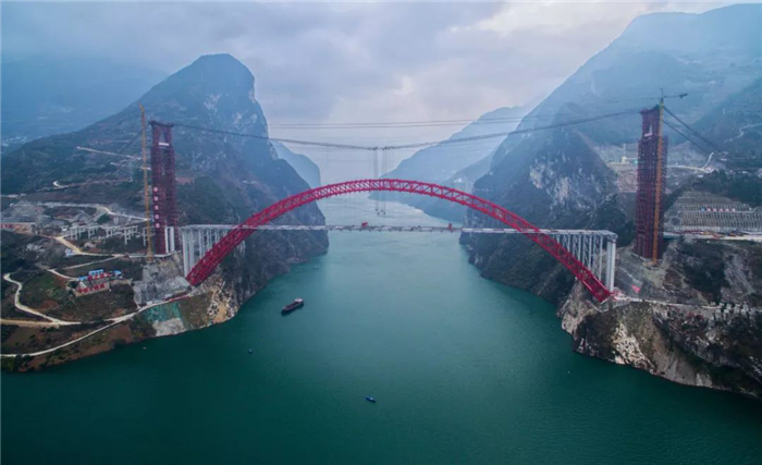 12月27日上午,隨著最后一節鋼主梁成功吊裝就位,由武船重工股份承建的世界最大跨度鋼箱桁架推力拱橋鋼主梁順利實現合龍,合龍儀式在橋址南岸舉行,大橋業主、設計、總包、監理單位,武船重工股份副總經理、工會主席姜海松及公司項目部成員參加合龍儀式。