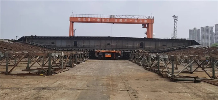 棋盤洲長江大橋最后一輪鋼箱梁節段下胎架