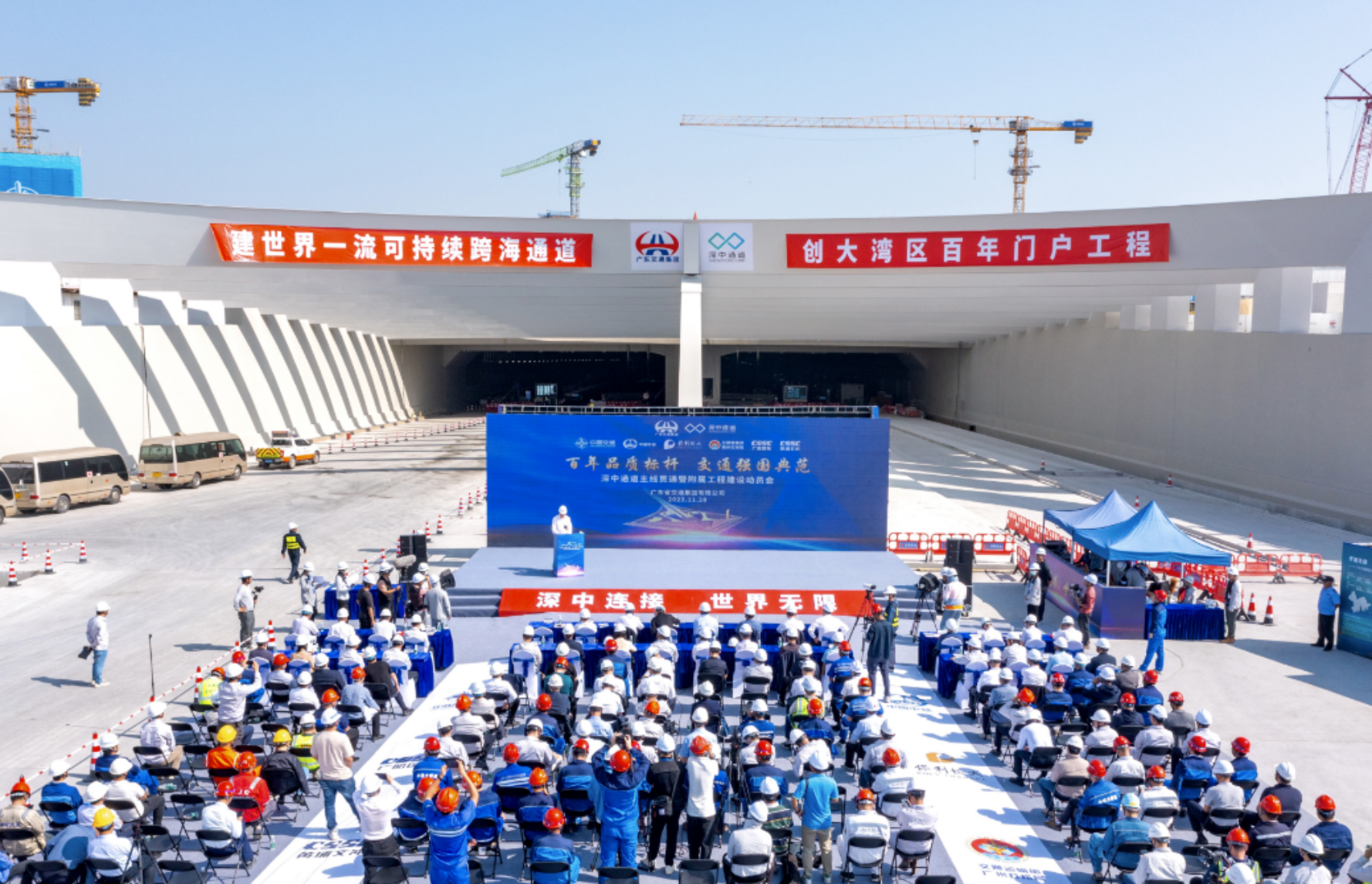 貫通儀式在西人工島舉行,武昌造船重工公司相關負責人受邀參加貫通儀式。武昌造船重工公司承制的深中通道G03標包含伶仃洋大橋的一半(深圳側的一半和合龍段J段)及東泄洪區非通航孔橋,鋼箱梁總重約9.77萬噸,是深中通道項目橋梁鋼結構中最大標段。