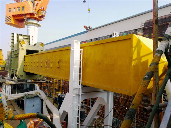 項目現(xiàn)場安裝負責人介紹,長度35米、重110噸的巨型鋼樁與鋼樁套方孔之間的間隙不足10毫米,兩者之間的交會對接過程猶如高空“穿針引線”,難度很大。為此,模塊公司針對關(guān)鍵吊裝過程,科學設(shè)計制作了系列吊運移位和微調(diào)定位工裝,綜合起重模式動態(tài)轉(zhuǎn)換、船舶甲板位置精準裝配、空間相對位置測量等多種力量手段,長度35米的鋼樁精準穿入船艉左舷的固定鋼樁套。檢測結(jié)果顯示,鋼樁與鋼樁套間的安裝精度全面達到了技術(shù)要求。