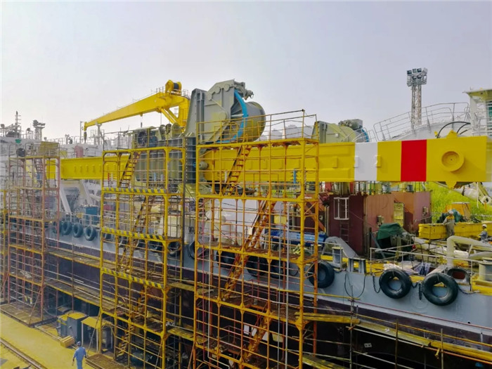 近日,長江三峽壩區(qū)航道維護鏟斗挖泥船鋼樁定位系統(tǒng)迎來關(guān)鍵節(jié)點,船臺安裝階段難度最大的3組巨型鋼樁安裝作業(yè)任務正式啟動,經(jīng)過周密準備和科學吊裝作業(yè),首組巨型鋼樁順利安裝到挖泥船船艉左舷,與先期安裝完成的一臺固定鋼樁套實現(xiàn)高空“穿針引線”和完美合體。