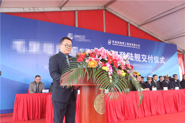 該國海軍參謀長一行、中船重工武船集團副總經(jīng)理姚勝華及國內相關單位領導參加了交船儀式。