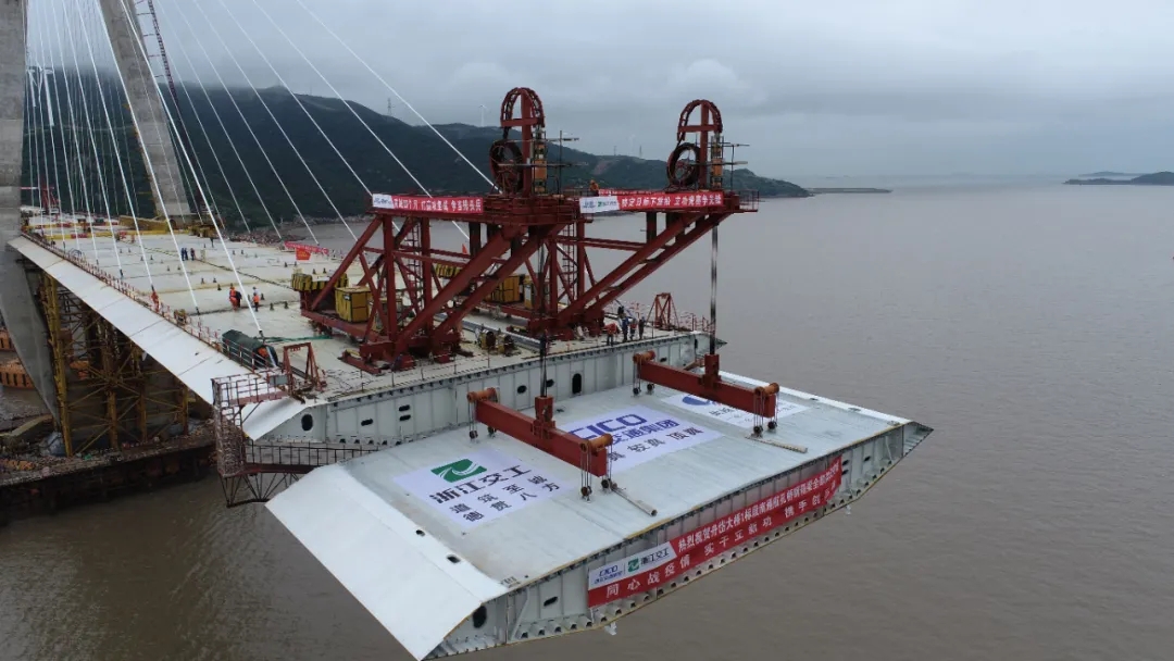 復工后,武船重工股份堅持疫情防控和復工復產兩手抓,開展勞動競賽,在保證質量和安全的前提下,加快生產進度,最終在三個鋼結構標段中拔得頭籌,在臺風來臨前完成了全部節段的吊裝,降低了橋位施工風險。