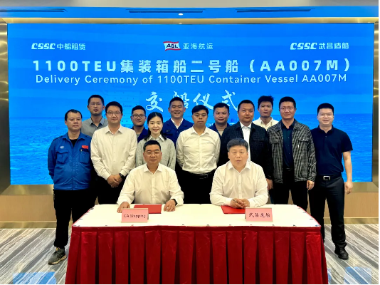 4月25日,由中國船舶集團武昌造船為CA SHIPPING建造的 1100TEU集裝箱船2號船 提前交付!該船的提前交付是武昌造船步入快車道,跑出加速度的成果體現,展現了公司在設計和建造方面的綜合實力,也為武昌造船建廠90周年獻上的一份沉甸甸的賀禮!武昌造船、亞海航運、NK船級社、哥倫比亞船舶管理公司等相關單位領導和嘉賓共同見證交付儀式。