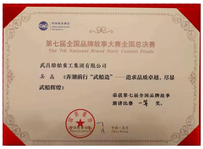 ▲吳晶《弄潮前行“武船造”?C?C追求品質(zhì)卓越,盡顯武船輝煌》榮獲第七屆全國品牌故事大賽演講比賽一等獎(jiǎng)